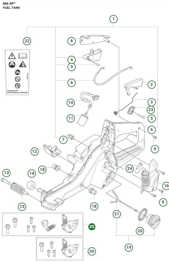 Vibrationselement till Husqvarna 564XP och 564XPG med artikelnummer 540180001